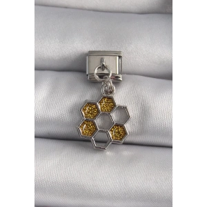 316L Çelik Gümüş Renk Sallantı Simli Bal Beteği Model Nomination Charm