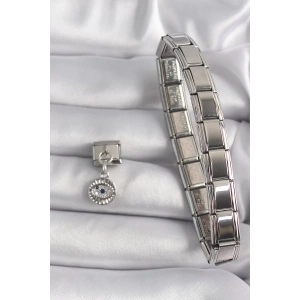 316L Çelik Gümüş Renk Sallantı Zirkon Taşlı Göz Model Nomination Charm