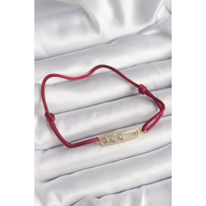 Kırmızı İpli Asansörlü Zirkon Taşlı Gold Messika Model Kadın Bileklik