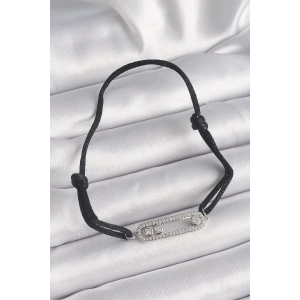 Siyah Renk İpli Asansör Zirkon Taşlı Gümüş Messika Model Kadın Bileklik