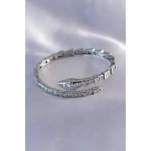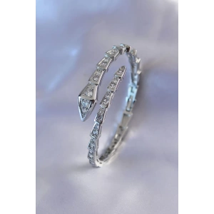VIP Seri Yılan Model Gümüş Renk Kadın Kelepçe Bileklik
