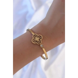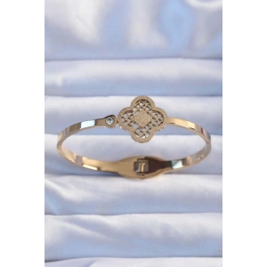 316L Çelik Altın Renk Zirkon Taşlı Simli Yonca Kelepçe