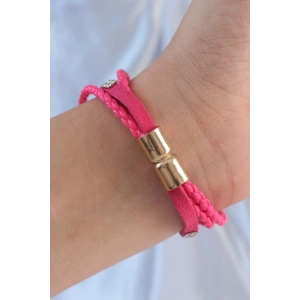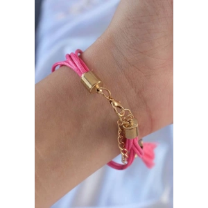 Pembe Renk Zirkon Taşlı Metal Aksesuarlı İpli Çoklu Bileklik
