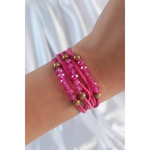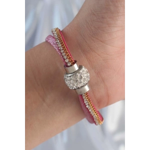 Pembe Renk Zirkon Taşlı Deri Çoklu Bileklik