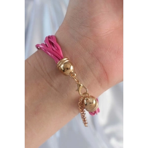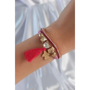 Pembe Zirkon Taşlı İpli Püskül Detay Çoklu Bileklik