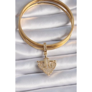 316L Çelik Gold Renk Zincir Model Kilit Kalp Figür Kadın Bileklik