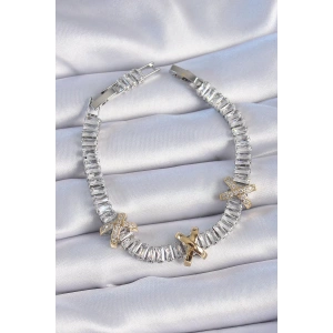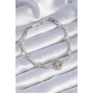Pirinç Gümüş Renk Zirkon Taşlı Yonca Model Kadın Bileklik
