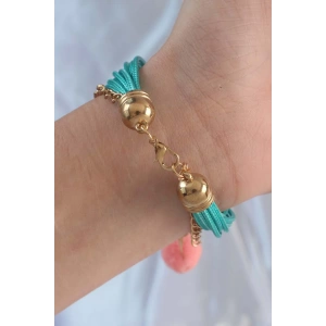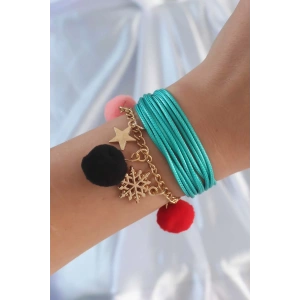 Turkuaz Renk Kar Tanesi Figür Zincir Detay İpli Çoklu Bileklik