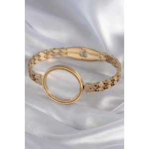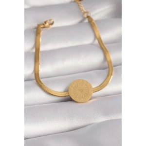 316L Çelik Gold Renk İtalyan Zincir Model İşlemeli Madalyon Figür Kadın Bileklik