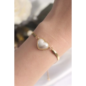 316L Çelik Gold Renk Bombeli Kalp Kadın Bileklik