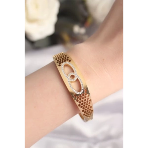 316L Çelik Zirkon Taşlı Gold Renk Kadın Kelepçe Bilezik