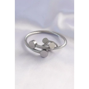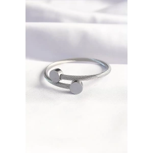316L Çelik Gümüş Renk Oval Aksesuarlı Burgu Model Bileklik ve Yüzük Kombini