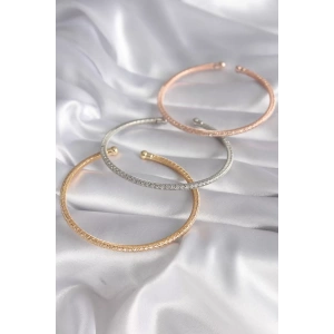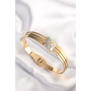 316L Çelik Gold Renk Zirkon Taşlı Kadın Kelepçe Bilezik