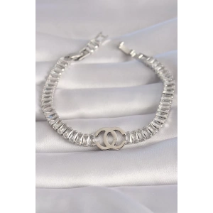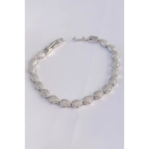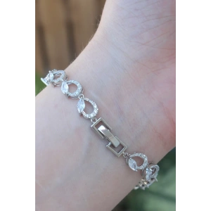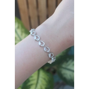 Pirinç Gümüş Renk Zirkon Taşlı Su Yolu Model VIP Seri Kadın Bileklik
