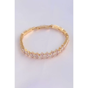 Vip Seri Pirinç Pembe Zirkon Taşlı Gold Renk Baget Model Bileklik