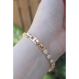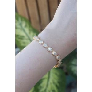 Vip Seri Pirinç Zirkon Taşlı Gold Renk Damla Model Bileklik