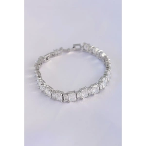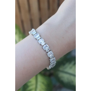 Vip Seri Pirinç Zirkon Taşlı Gümüş Renk Baget Su Yolu Model Bileklik