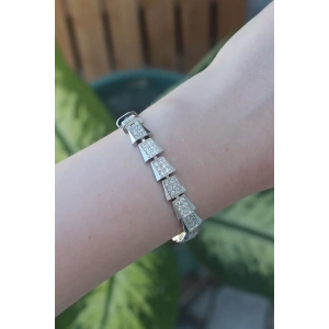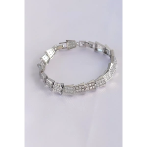 Vip Seri Pirinç Zirkon Taşlı Gümüş Renk Geometrik Bileklik