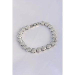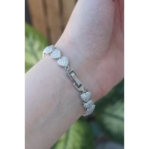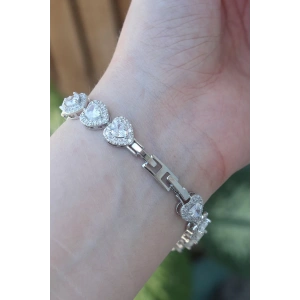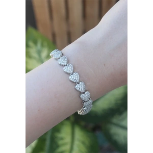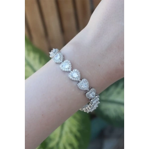 Vip Seri Pirinç Zirkon Taşlı Gümüş Renk Kalp Model Bileklik