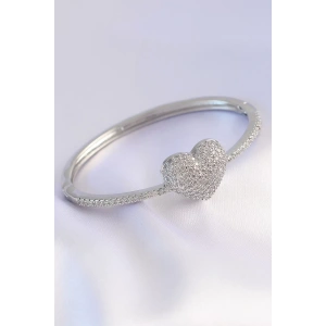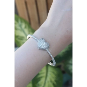 Vip Seri Pirinç Zirkon Taşlı Gümüş Renk Kalp Model Kelepçe