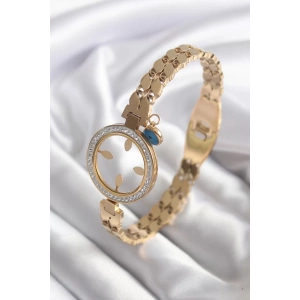 316L Çelik Gold Renk Zirkon Taşlı Çiçek Model Kadın Kelepçe