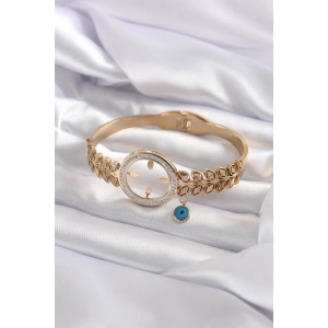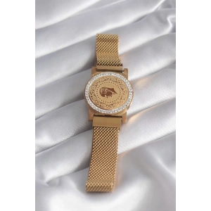 316L Çelik Gold Renk Mıknatıslı Hasır Zirkon Taşlı Çeyrek Altın Model Kadın Bileklik