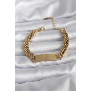316L Çelik Gold Renk İsim Yazılabilir Plaka Model Kadın Bileklik