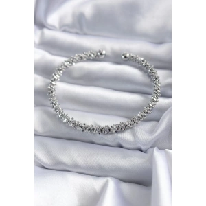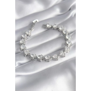Pirinç Gümüş Renk Zirkon Taşlı Kalp Model VIP Seri Kadın Bileklik