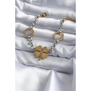 316L Çelik Mix Renk Zincir Model Yonca Figür Kadın Bileklik