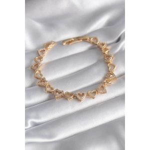 Pirinç Gold Renk Zirkon Taşlı Kalp Model VIP Seri Kadın Bileklik