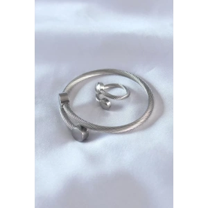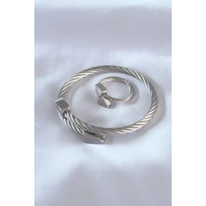 Çelik Gümüş Renk Sıkı Burgu Model Erkek Bileklik Yüzük Seti