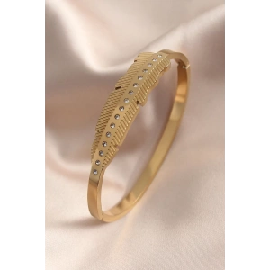 316L Çelik Gold Renk Çeyrek Altın Zirkon Taş Detay Kadın Kelepçe