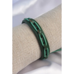 Metal Aksesuarlı Sarı Siyah Renk Deri Erkek Bileklik
