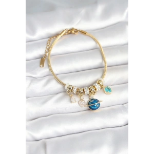 Pirinç Gold Renk Dünya Charmlı Kadın Bileklik