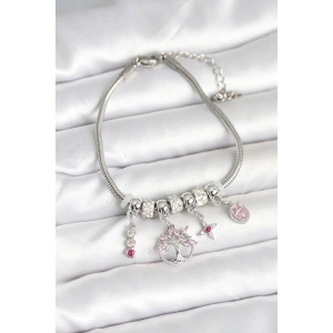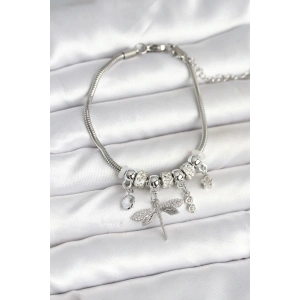 Pirinç Gümüş Renk Yusufçuk Charmlı Kadın Bileklik