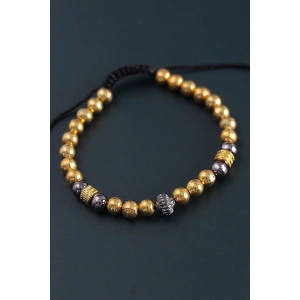 Doğal Taş Çember Model Gold Ve Füme Renk Asansörlü Erkek Bileklik