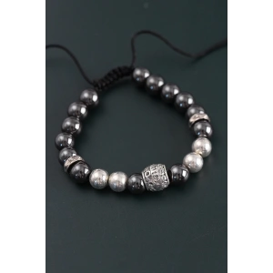 Doğal Taş Family Model Gümüş Ve Füme Renk Asansörlü Erkek Bileklik