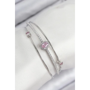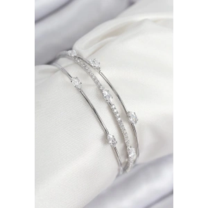 Pirinç Zirkon Taşlı Su Yolu Model Gümüş Renk Kadın Bileklik