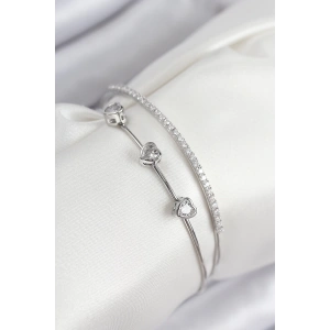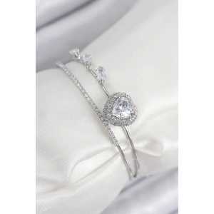 Pirinç Zirkon Taşlı Kalp Model Gümüş Renk Kadın Bileklik