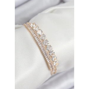 Pirinç Zirkon Taşlı Baget Model Gold Renk Kadın Bileklik