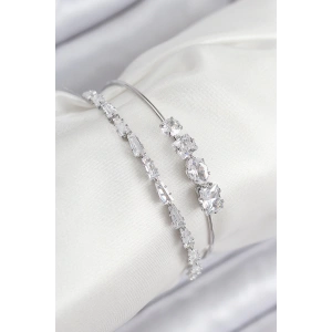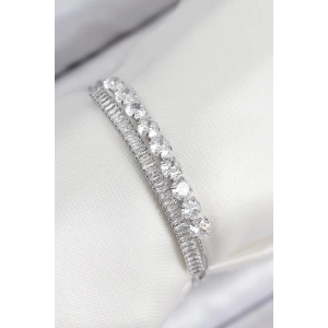 Pirinç Zirkon Taşlı Baget Model Gümüş Renk Kadın Bileklik