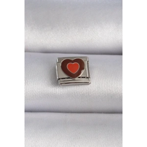 316L Çelik Gümüş Renk Kahverengi Kalp İşlemeli Nomination Charm