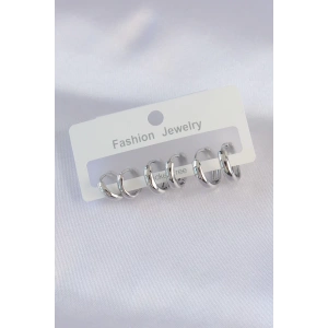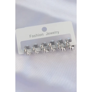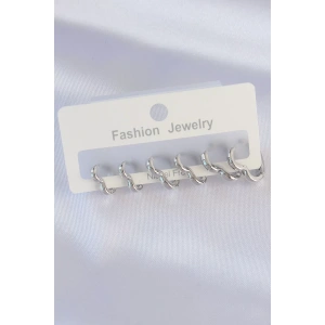 Pirinç Gümüş Renk Minimal Tırtıklı Küpe Seti