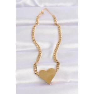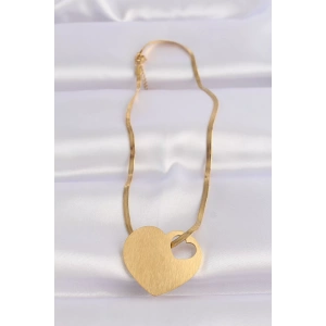 316L Çelik Zincir Altın Renk Düz Plaka Kalp Kolye