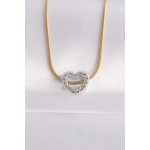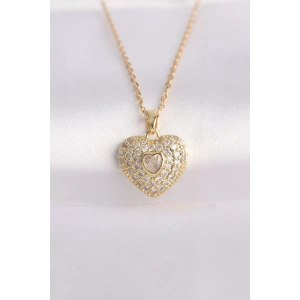 316L Çelik Zincir Altın Renk Zirkon Taşlı Kalp Kolye