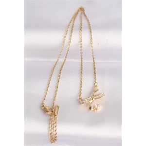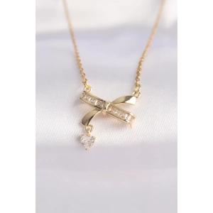 316L Çelik Zincir Altın Renk Zirkon Taşlı Kalp Detay Fiyonk Kolye