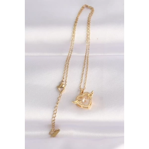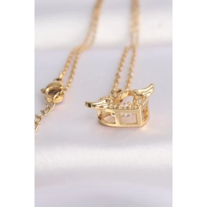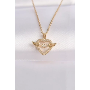316L Çelik Zincir Altın Renk Zirkon Taşlı Kanatlı Kalp Kolye
