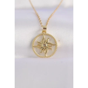 316L Çelik Zincir Altın Renk Zirkon Taşlı Oval Tasarım Güneş Kolye