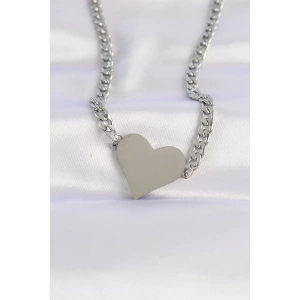 316L Çelik Zincir Gümüş Renk Düz Plaka Kalp Kolye