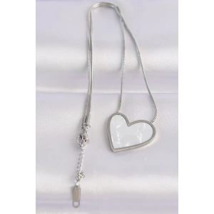 316L Çelik Zincir Gümüş Renk Mermer Desenli Kalp Kolye